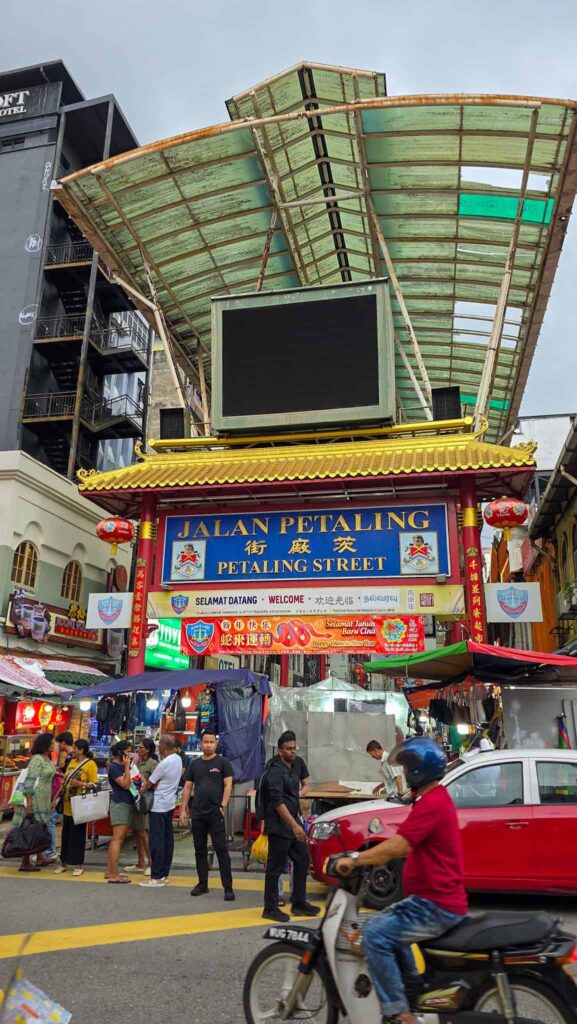 Petaling Street Market is a busy market that sells all kinds of items, from clothes, shoes, to fruit and street food. It’s a popular tourist destination.